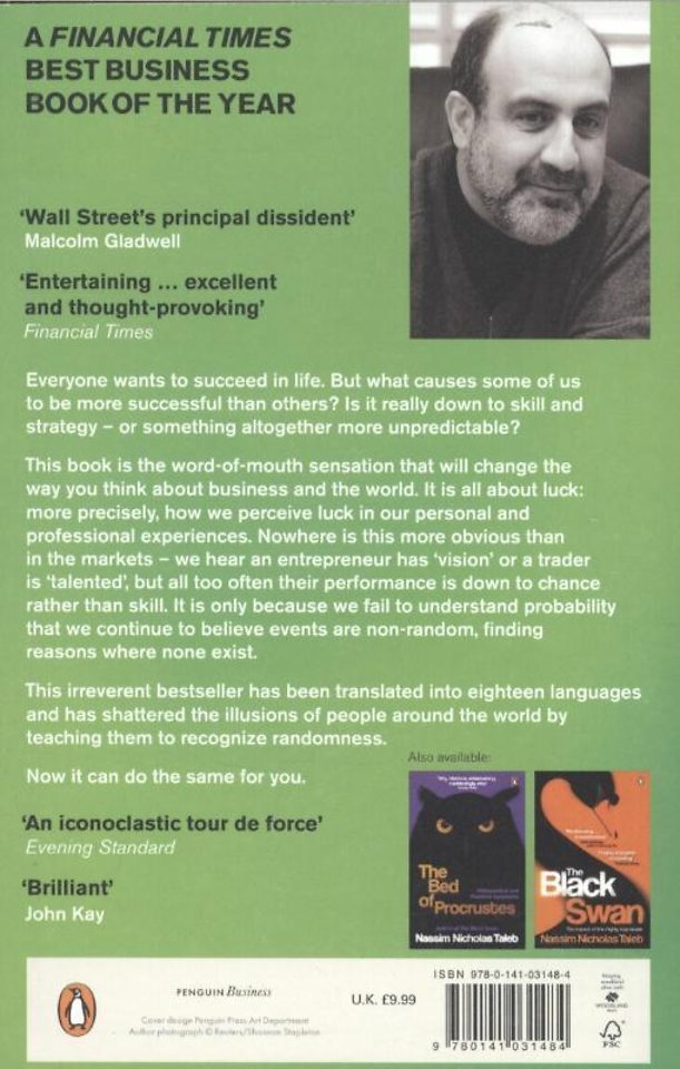 Meer over Nassim Nicholas TalebIedereen wil succes in het leven, maar sommige mensen zijn succesvoller dan anderen. Waarom is dat? Komt het door hun vaardigheden en strategie, of door iets dat onvoorspelbaar is? Dit sensationele boek zal uw denken over zakendoen en de wereld compleet doen veranderen. Het gaat over geluk, of preciezer”: hoe we geluk ervaren in onze persoonlijke en zakelijke relaties en ervaringen. Nergens is geluk duidelijker zichtbaar dan in de markten. We horen dat een ondernemer 'visie' heeft en dat een beurshandelaar 'talent' heeft, terwijl het succes feitelijk meer te maken heeft met geluk dan met wijsheid.