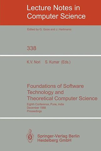 This volume contains the proceedings of the 8th Conference on Foundations of Software Technology and Theoretical Computer Science held in Pune, India, on December 21-23, 1988. This internationally well-established Indian conference series provides a forum for actively investigating the interface between theory and practice of Software Science. It also gives an annual occasion for interaction between active research communities in India and abroad. Besides attractive invited papers the volume contains carefully reviewed submitted papers on the following topics: Automata and Formal Languages, Graph Algorithms and Geometric Algorithms, Distributed Computing, Parallel Algorithms, Database Theory, Logic Programming, Programming Methodology, Theory of Algorithms, Semantics and Complexity.