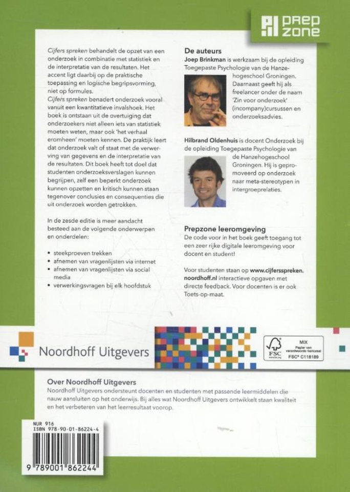 Deze zesde editie van 'Cijfers spreken' besteedt meer aandacht aan steekproeven trekken en het afnemen van vragenlijsten via internet en social media. Verder zijn in deze uitgave aan het eind van ieder hoofdstuk verwerkingsvragen toegevoegd. Bij die vragen staat duidelijk aangegeven welke stof uit het betreffende hoofdstuk studenten moeten beheersen om een opgave te kunnen maken. Zo kunnen studenten nog beter hun beheersing van de stof monitoren.