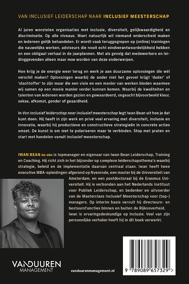 In 'Van inclusief leiderschap naar inclusief meesterschap' legt Iwan Bean uit hoe je dat kunt doen. Hij heeft in zijn werk en privé veel ervaring met diversiteit, inclusie en innovatie, waarbij hij productieve en constructieve strategieën in concrete acties omzet. De kunst is om niet te polariseren maar te verbinden. Stop met praten en start met handelen vanuit inclusief meesterschap.